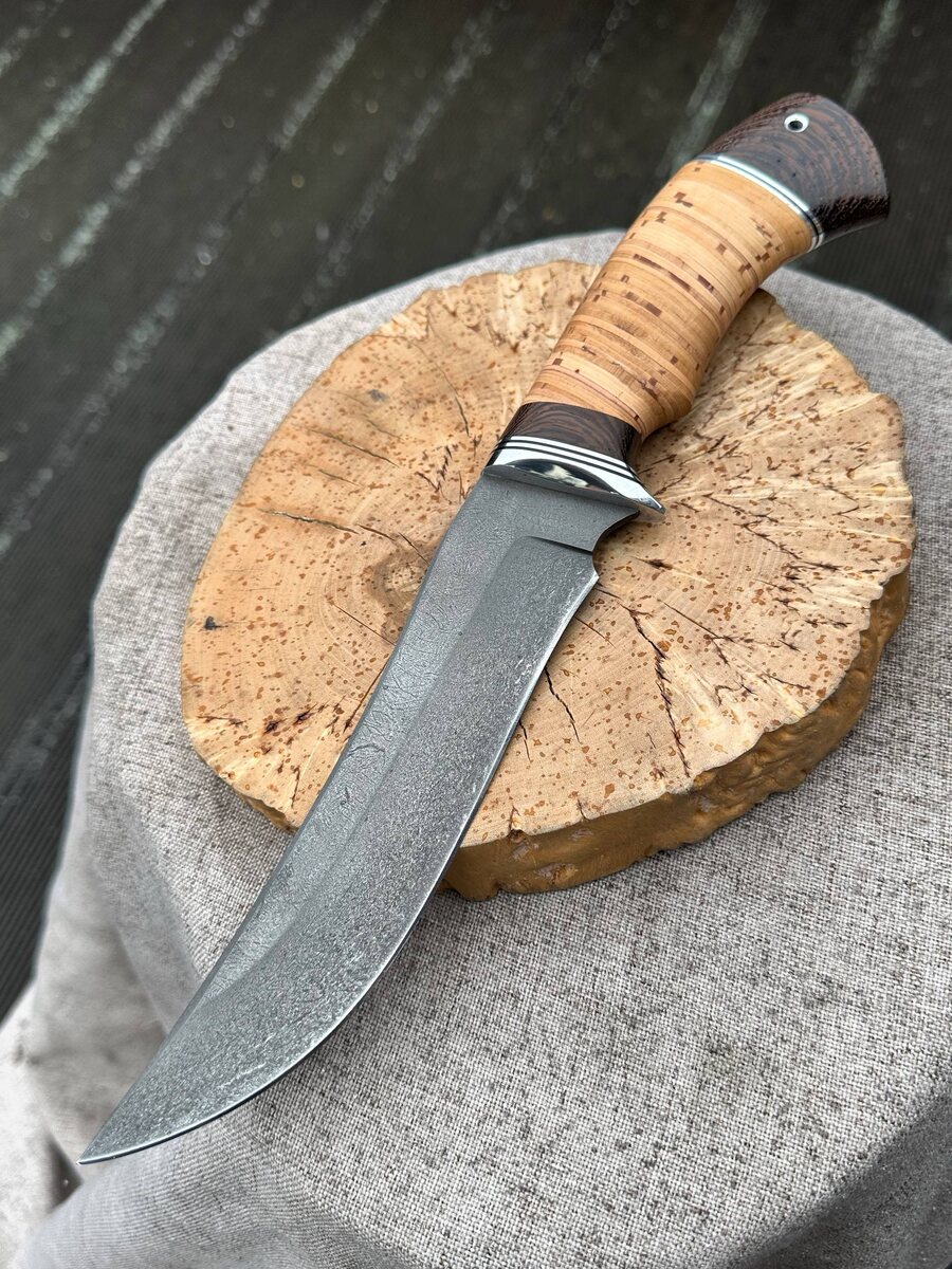 ! ⠀ Сталь Х12МФ (твердость 61-62 HRC) — прочность, выносливость, долгий срок службы заточки. Такой нож не подведёт в самых жёстких условиях: охота, рыбалка, туристические походы, работа по дереву и в полевых условиях. Рукоять из бересты — тёплая, лёгкая и не скользит даже во влажных руках. Гарда — специальной формы, защищает от соскальзывания руки. Заточка «в бритву» — режет легко и точно, сразу из коробки готов к работе. Кожаные ножны — в комплекте. *Дополнительно* можем изготовить формованные ножны (+8000 руб.). Цена: ~10.648~ → 9.050 рублей со скидкой! Как заказать? Пишите в Telegram: [@Nazarklinokbot](https://t.me/Nazarklinokbot), или WhatsApp/Viber: [ +79101343831](https://wa.me/79101343831) #нож #охота #рыбалка #ручнаяработа #кузницаНазарова #Х12МФ #Спецназ #подарокмужчине Telegram скоро заблокируют, подпишитесь на наш канал в MAX - подписаться