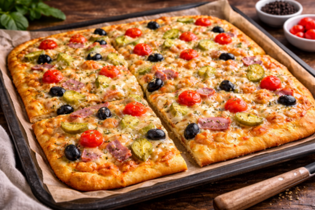 Это невероятно вкусное и одновременно гениально простое блюдо, которое станет спасением для быстрого ужина или обеда, когда душа желает пиццы, но нет ни желания, ни сил возиться с традиционным дрожжевым тестом.