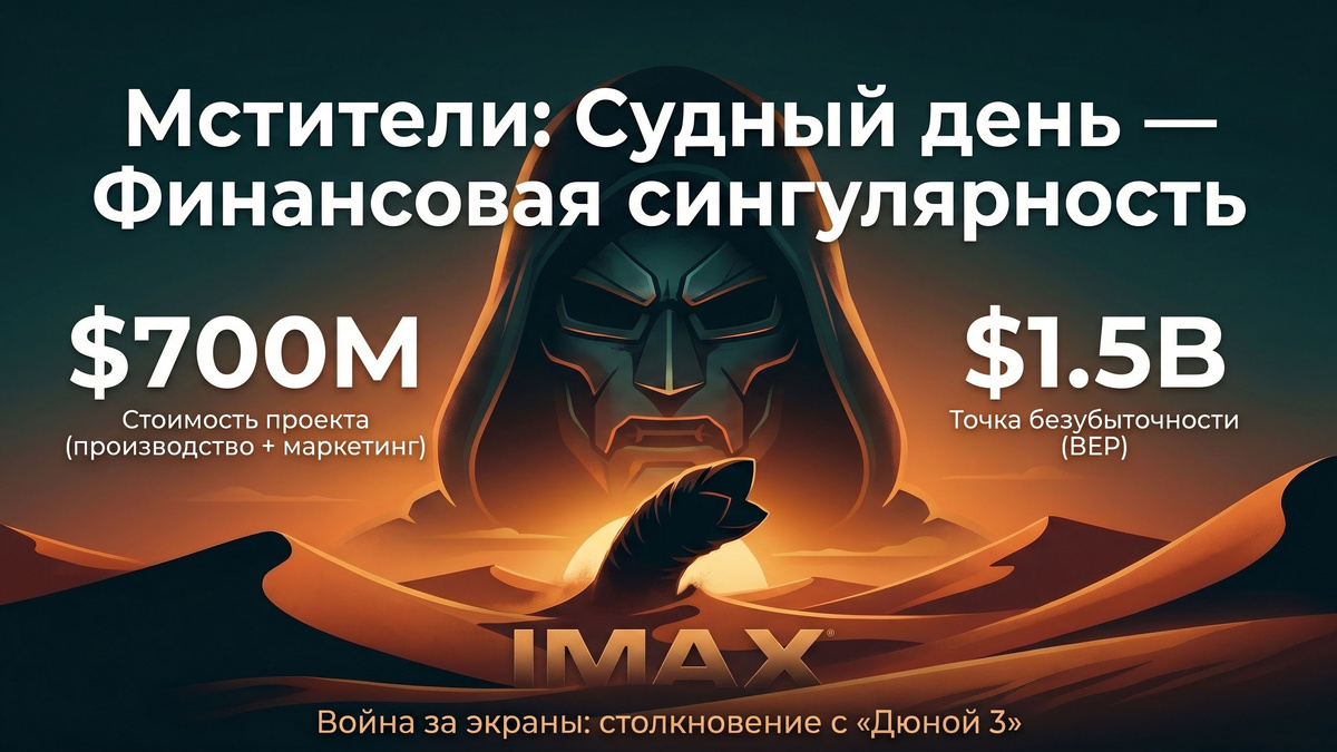 Начнем с абсолютных рекордов. Студия Marvel готовит свой главный хит — «Мстители: Судный день», и цифры там просто космические. На само производство выделено около 400 миллионов долларов. Но это еще не всё! Студия применяет маркетинг «выжженной земли» и вливает в рекламу еще 300 миллионов. Суммарно это 700 миллионов долларов! Идея в том, чтобы маска злодея Доктора Дума была повсюду: от высокотехнологичных гаджетов до обычного геля для душа. Чтобы просто выйти в ноль, картине нужно собрать от 1.4 до 1.75 миллиарда долларов по всему миру. Если сборы окажутся ниже 1.5 миллиарда — это будет считаться провалом. Почему ставки так высоки? Зрители немного устали от супергероики, особенно после экспериментов с «женскими версиями» персонажей. Чтобы вернуть аудиторию, в кино возвращают Роберта Дауни-младшего (именно он играет Доктора Дума) и режиссеров братьев Руссо. Их гонорары съедают половину бюджета — 200 миллионов долларов! При этом сейчас в Лондоне идут дополнительные съемки, есть слухи о в