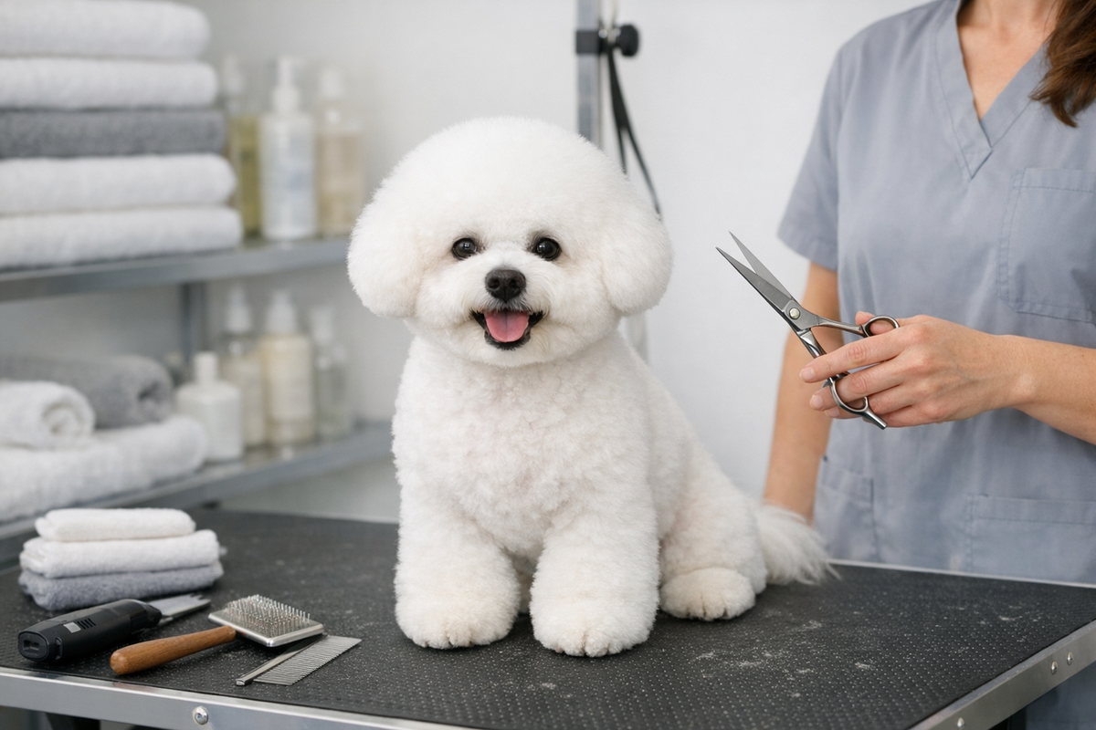 Щенка бишон фризе нужно приучать к грумингу рано. Эта порода будет посещать салон всю жизнь, поэтому первый опыт очень важен. Малыша знакомят с расческой, феном, машинкой, ножницами, обработкой лап и мордочки. Процедуры должны проходить спокойно, без спешки и грубости. Тогда взрослая собака легче переносит уход и не боится грумера.