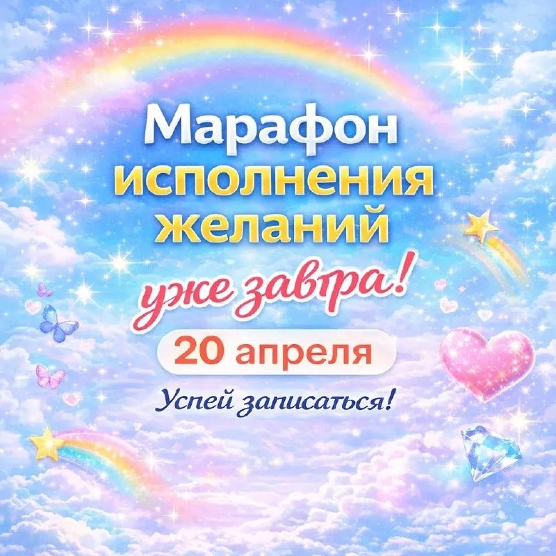 …. Завтра уже 20 апреля🔥🔥🔥 И это тот самый «понедельник», на который ты, возможно, откладывала уже не раз. Разница только в одном: 👉 в этот раз ты можешь реально начать Я запускаю марафон «Исполнение желаний» И это не про «попробовать что-то новое». Это про выйти из состояния, в котором ты сейчас, и наконец начать жить по-другому. 💫 Если ты чувствуешь отклик — не тяни Потому что «потом» обычно превращается в ещё один месяц, который ничего не меняет. Напиши мне «МАРАФОН» 💬 я добавлю тебя