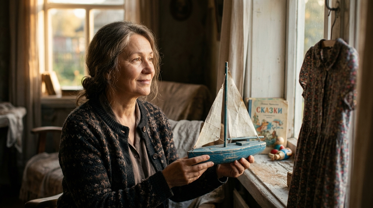 Парус был вырезан из страницы старой тетради в клетку. На мачте осталась капля засохшего клея, пожелтевшая от времени. На корпусе, сбоку, карандашом было выведено: «Тёме от Нины». Буквы детские, кривые, с нажимом.
