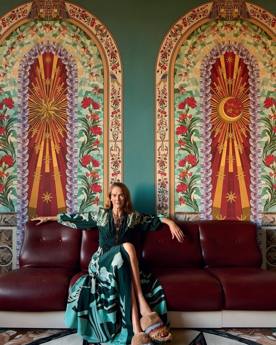Яркие стены, сложные орнаменты, насыщенные цвета, графичные полы, декоративные потолки, винтажные мотивы, живые цветы, художественные детали. Каждая зона выглядит как отдельная сцена с собственным настроением.
