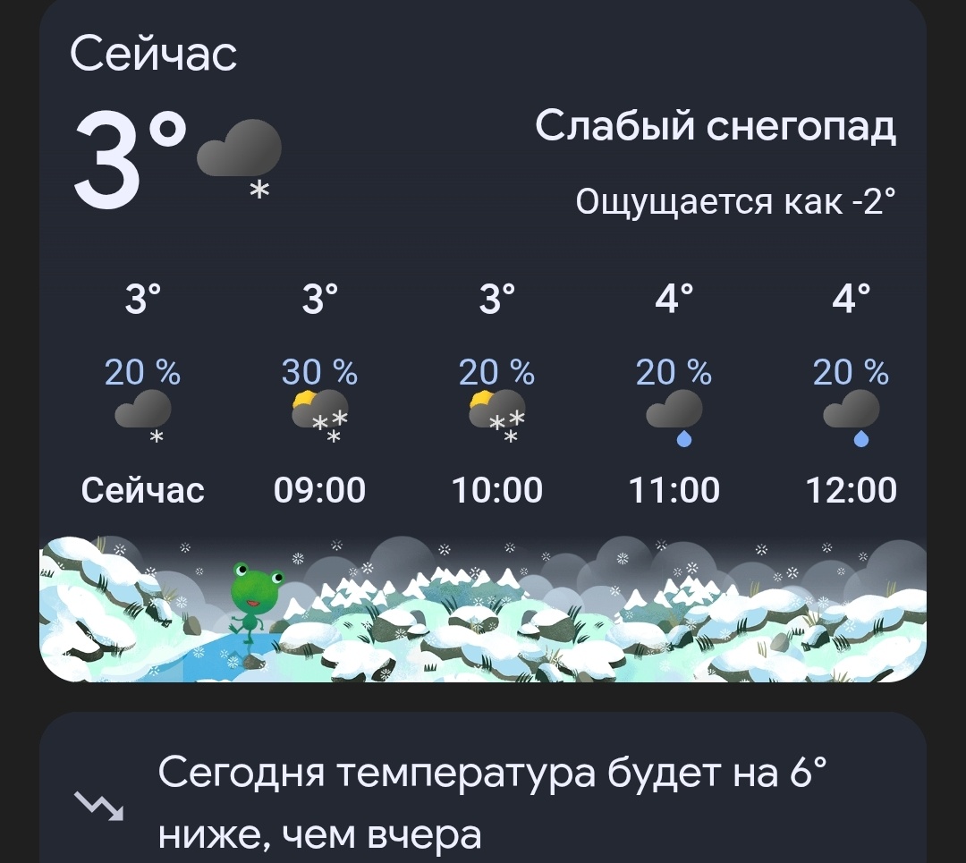 Пишут, что +3°C, а ощущается как –2°C.