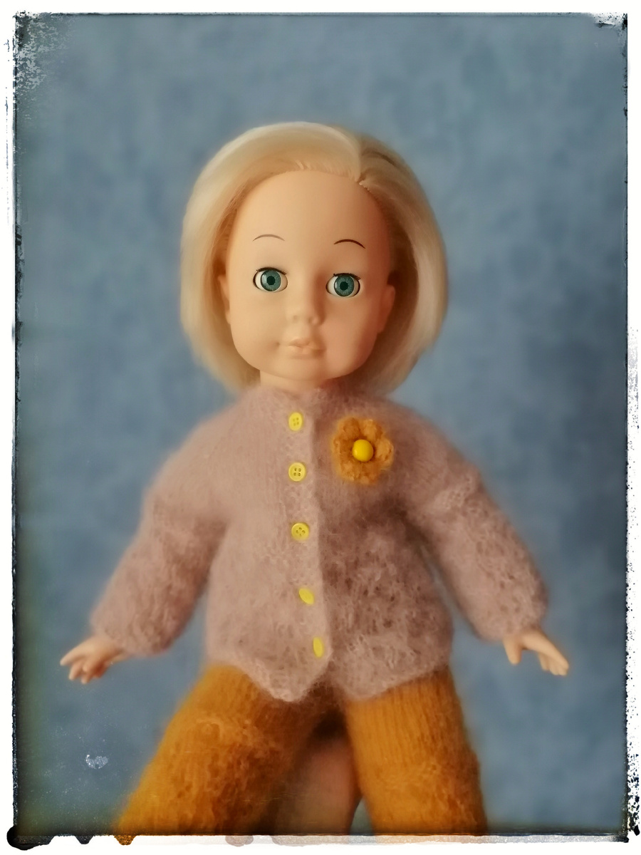 Но сейчас она мне даже стала больше нравиться, привыкаем друг к другу, приглядывемся)) Уютной она какой-то стала, домашней, мягкой и тактильно приятной. Костюм из мохера связала скорей следуя своим восприятиям, так как у нас сейчас холодно как на улице, так и дома( почему-то в Воронеже решили отключить отопление уже 2 ареля)) Поэтому хочется утепляться самой и утеплять своих кукол, несмотр на то, что на улице уже весна. Результатом довольна, хотя в проце