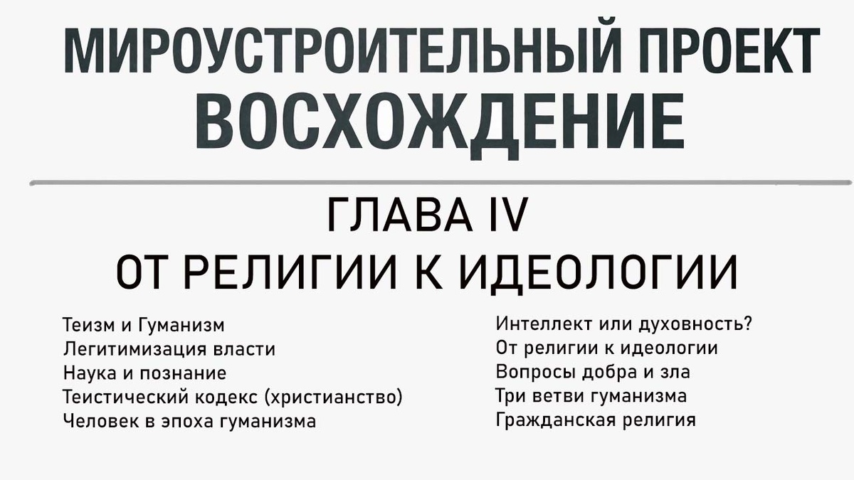 Возврат к теизму, по очевидным причинам, маловероятен. И прежде всего это связано с наукой, которая стала новым оракулом, формирующим современное миропредставление. Возврат к теизму означал бы и необходимость отказа от науки, а это стало бы для государства, окруженного агрессивными соседями, смертным приговором. Исходя из этого можно предполагать, что будущее человечества связано с одной из гуманистических идеологий. А значит, наша задача заключается в том, чтобы разобраться детально с существующими идеологиями, понять их сильные и слабые стороны. И если ни одна из существующих идеологических моделей не будет признана приемлемой, предложить новую, жизнеспособную идеологию, которая позволит человечеству жить и развиваться. Другими словами говоря, человеческая цивилизация нуждается в идеологии восхождения.