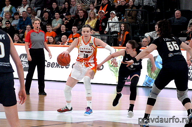 Баскетболистки УГМК провели стартовую игру финальной серии плей-офф чемпионата Премьер-лиги против курского «Динамо». Действующие обладательницы титула одержали уверенную победу. В дебюте встречи на паркете шла конкурентная борьба, но понемногу хозяйки смогли навязать свою игру. В первую очередь, стоит отметить атаки с дальней дистанции, в которых особенно преуспела Йована Ногич, трижды поразившая кольцо из-за дуги. Отметились трехочковыми также Анастасия Шилова, Виктория Третьякова и Мария Попова. В итоге первую четверть хозяйки выиграли с перевесом +8 – 26:18. Во втором отрезке результативность снизилась, а вязкой борьбы стало больше. Тем не менее, БК УГМК продолжал контролировать события на площадке, не позволяя соперницам приближаться. К большому перерыву «лисицам» удалось нарастить перевес до двузначного – 43:31. Третья четверть продолжила тенденцию, наметившуюся в предыдущей десятиминутке. На площадке по-прежнему было много борьбы, курянки предпринимали попытки камбэка, которые,