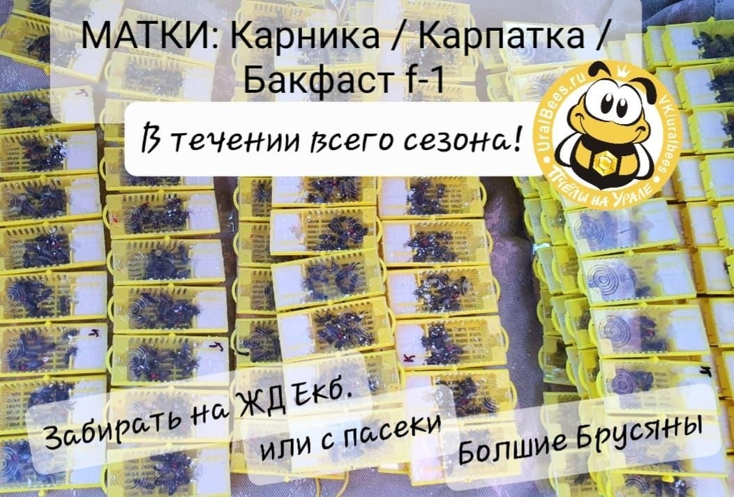 🔆🐝 🔆🐝🔆🐝🔆 Принимаются заказы на племенных плодных маток КАРНИКА, БАКФАСТ, КАРПАТКА f-1 в течении всего сезона. Материал Австрийская ассоциация, облётник Майкоп. ⚪️Белая метка 26г. Даты: ±28мая (стоимость 2тыс.), ±10 июня, ±17июня, ±28июня и далее в течении сезона... Стоимость -1500р. -Для заказа - за ранее звоните, отпишитесь в мах +79126243926 Данил. ➡ Забирать на жд Екб, утро с 8-10⁰⁰ напротив у гостиницы или с 13⁰⁰ на пасеке Большие Брусяны.