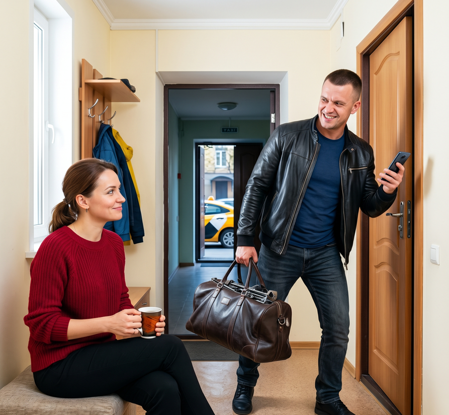 Роман торопливо застегивал молнию на кожаной куртке, стараясь не смотреть в мою сторону. У входной двери стоял его плотный дорожный саквояж. Муж то и дело бросал нервные взгляды на экран смартфона, проверяя время. На улице уже гудел мотор приехавшего такси.