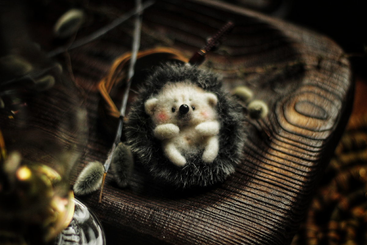 Свои запасы ёжиков никак не решусь продать, но не потому, что я жадина, а потому, что каждую игрушку хочется отснять красиво себе на память. Вот же современный мир как изменил подход к съемке: в руках постоянно телефон, а камеру взять - целое приключение же! Зарядить, флешку найти, свет поймать, а телефоном щщщщёлк и все. Но, согласитесь, объем совсем другой на снимках с зеркалки, да и ампосфера иная: