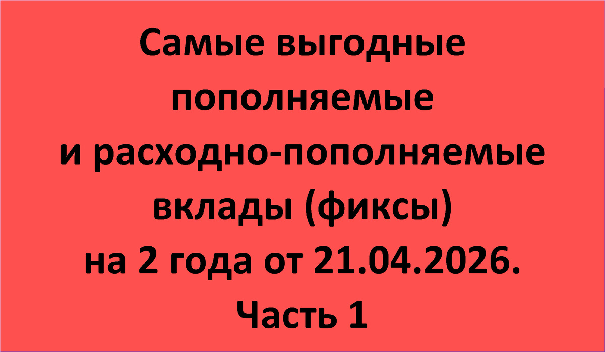Представляю вашему вниманию 1-ю часть (строки № 1-15) таблицы самых выгодных пополняемых и расходно-пополняемых вкладов (фиксов) на 2 года по состоянию на 21.04.2026 по версии Лесенки фиксов.