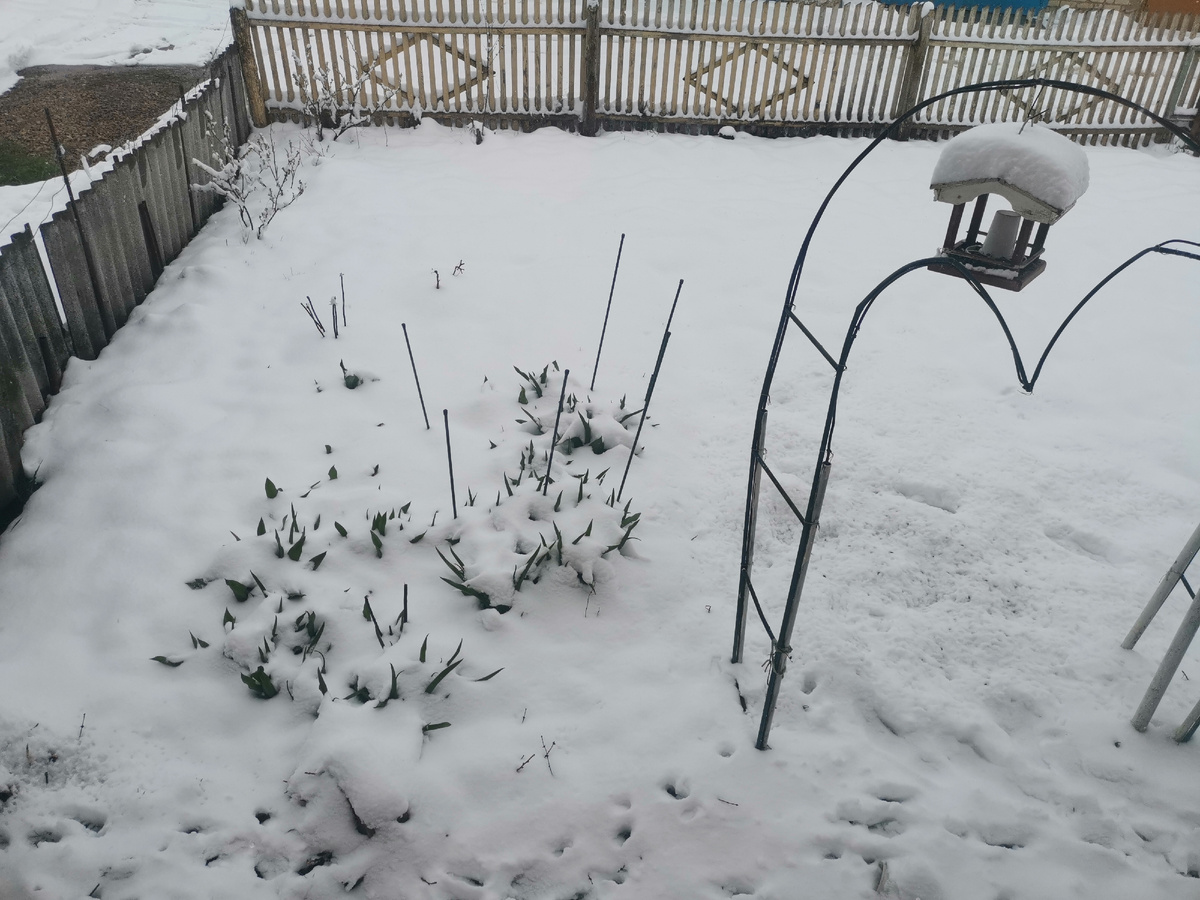 А снег всё ещё продолжает валить. А помидоры цветууууууууууут. Ага.