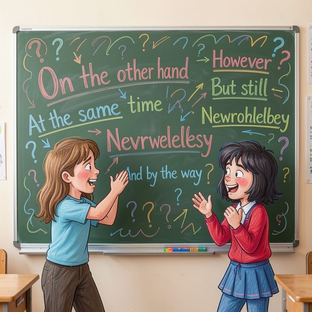 And by the way, I like pizza. И кстати, я люблю пиццу. But still - но всё же But still, I eat it only on weekends. Но всё же я ем её только по выходным. On the other hand - с другой стороны On the other hand, vegetables are healthy. С другой стороны, овощи полезны. Although on the other hand - хотя с другой стороны Although on the other hand, carrots are not my favourite. Хотя с другой стороны, морковь — не моя любимая. Despite that - несмотря на это Despite that, I try to eat one carrot a day. Несмотря на это, я стараюсь съедать одну морковь в день. But still - но всё же But still, I dream about a big pizza. Но всё же я мечтаю о большой пицце. At the same time - при этом At the same time, I know that too much pizza is bad. При этом я знаю, что слишком много пиццы — это вредно. However - однако However, my mum sometimes orders it for dinner. Однако моя мама иногда заказывает её на ужин. At the same time - в то же время At the same time, she adds a lot of vegetables. В то же вре