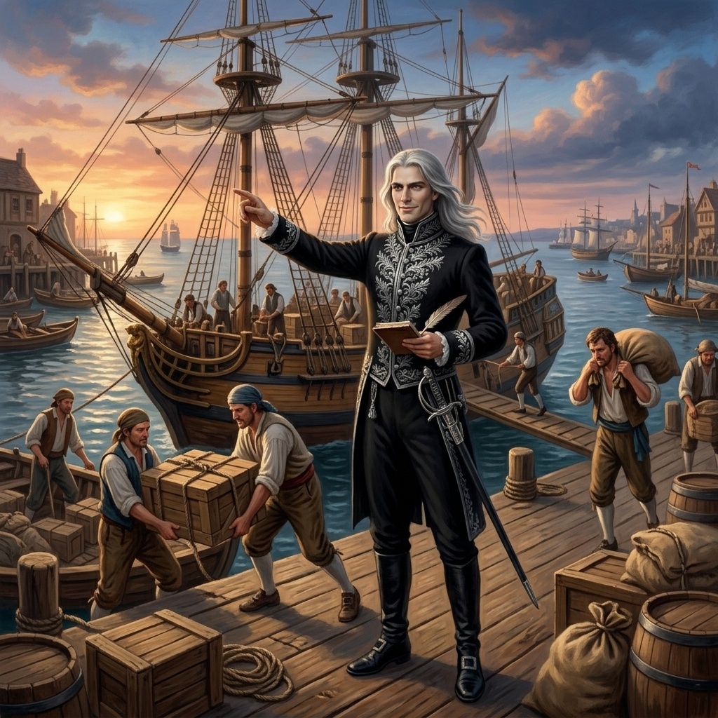В этот раз кэп решил поздравить меня так, как умеет только он: щедро, шумно и с оттенком неизбежных последствий. Весь экипаж гуляет за его счет, а командирский состав - в “Привороте” - самой известной таверне порта, где есть меню на любой вкус, так что, к закату я ожидал добрую порцию рома, мяса и, возможно, пару приятных собеседниц. Конечно, капитан щедро разрешил заказывать всё самое дорогое. Мне, как виновнику торжества, «самое дорогое» - из специального меню. Я привык к женскому вниманию. Честно говоря, к нему сложно не привыкнуть, когда ты - серебряный дракон, высокий платиновый блондин, да еще и в мундире. Обычно после первого взгляда все предельно понятно: она - кокетничает, я - улыбаюсь, вечер завершают “танцы” в том самом смысле. Казалось бы, идеальный вечер. Капитан умеет устраивать праздники с размахом.