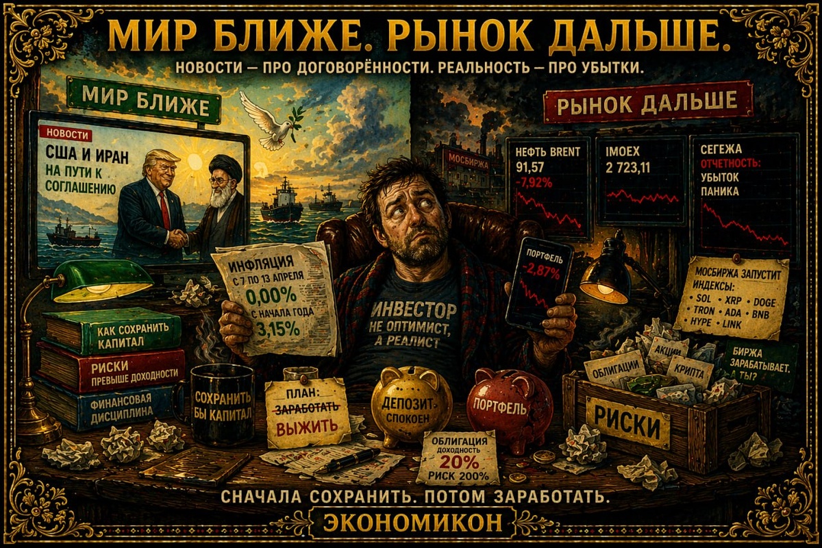 Прошла еще одна неделя апреля, позитива на рынке не прибавилось, к концу недели пришли новости о возможных более прочных мирных договоренностях между США и Ираном, что обрушило котировки на нефть. Нефть марки Brent 91,57 за пятницу потеряли почти 8% своей стоимости, и потянули за собой и российский нефтегазовый сектор. Заканчиваем неделю на уровне 2723 пункта по индексу ММВБ, это практически уровень закрытия прошлой недели, несмотря на то что движения по рынку практически нет, позитива довольно мало. Не успели улечься волнения вокруг Евротранса, как пришли новости от Сегежи. В четверг по компании вышла отчетность, которая была далека от идеала спровоцировав панику, как среди держателей акций, так и среди держателей облигаций. Акции обновили свои минимумы, выпуски облигаций потеряли от 5 до 10% своей стоимости, поползли слухи о неминуемом банкротстве компании. Начитавшись сверх интеллектуальных постов меня также начали одолевать сомнения, возникать желание скинуть облигации, но я остав