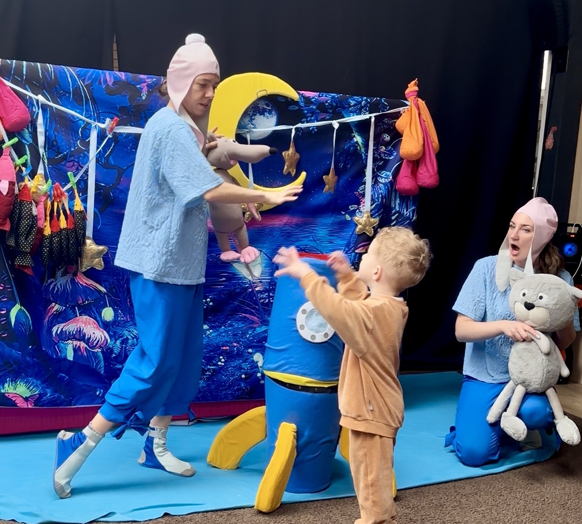 «Театр из фетра» — это выездные кукольные постановки, где дети не просто смотрят, а становятся частью истории. Герои — мягкие, яркие, сшитые из фетра — буквально оживают в руках актёра. И в какой-то момент оказываются… в руках самих детей.