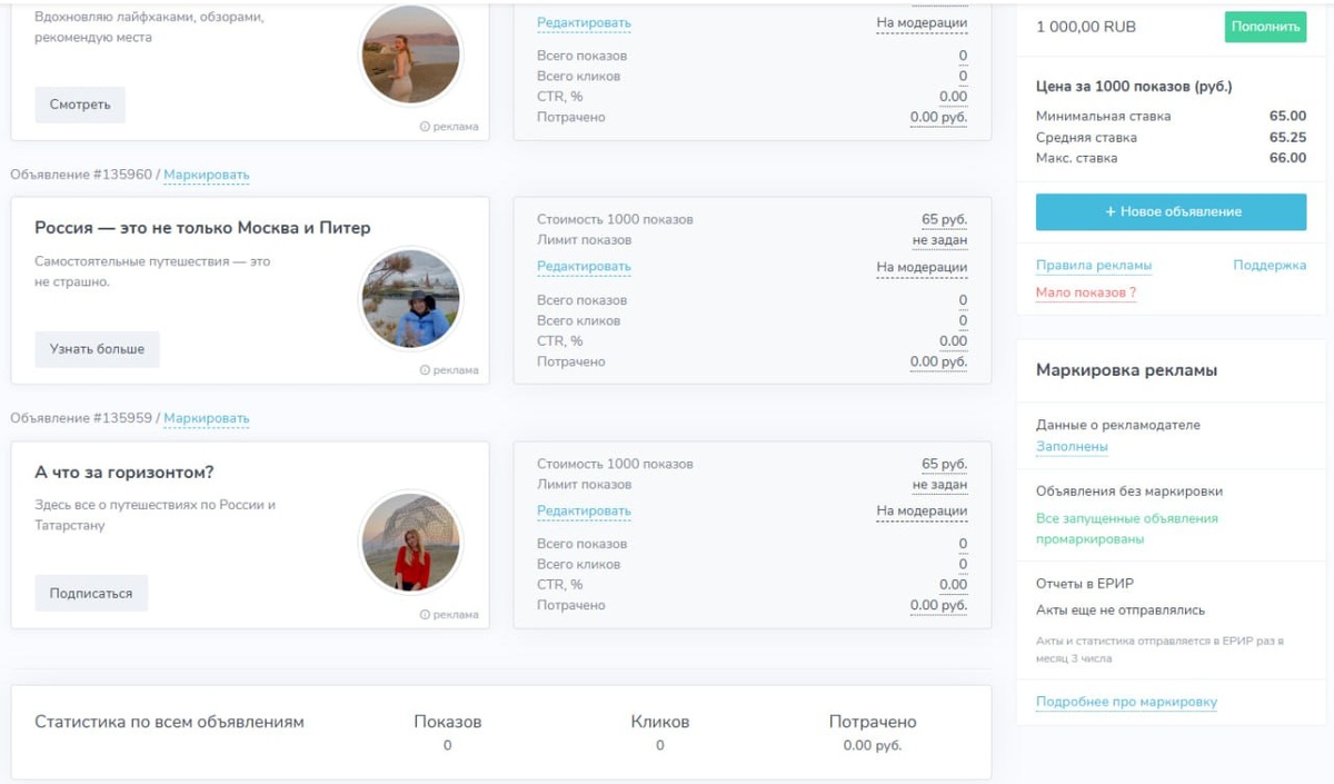 ! Сегодня дошли руки до тестирования одного рекламного инструмента. Сделала сразу 3 объявления, чтобы посмотреть вообще как работает кабинет и стоит ли оно того. Трафик буду вести в свой канал про путешествия (кто не знает, у меня есть и второй канал "А что за горизонтом?") Пока они проходят модерацию, вообще не понятно как будут работать. Надеюсь не сольет весь бюджет за 15 минут (хотя это возможно, потому что нигде нет кнопки чтобы поставить лимит, как например в вк адс) 😁 Планирую поделиться с вами результатами. Надеюсь, они правда будут интересными. Будете ждать? ☺️ 😊 Маркетинг начинается здесь