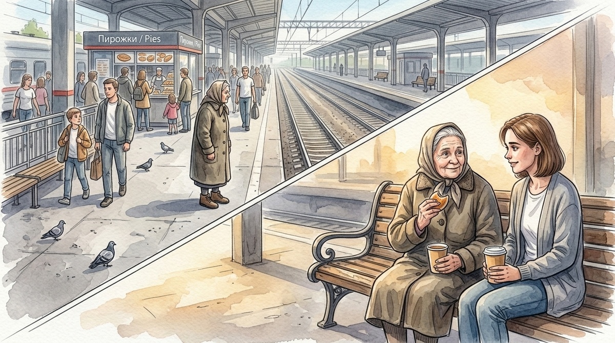 Одно меня не отпускает — она ведь могла остаться в этой обиде. Сидеть дома, считать сколько раз сын не приехал, сколько праздников пропустил. А она выбрала пирожное. И «да ладно». В девяносто один год — выбрать «да ладно». Вы бы смогли? Напишите мне — я правда хочу знать. А если такие встречи на перронах вас цепляют — оставайтесь, подписывайтесь. Я тут каждую неделю кого-то такого встречаю.