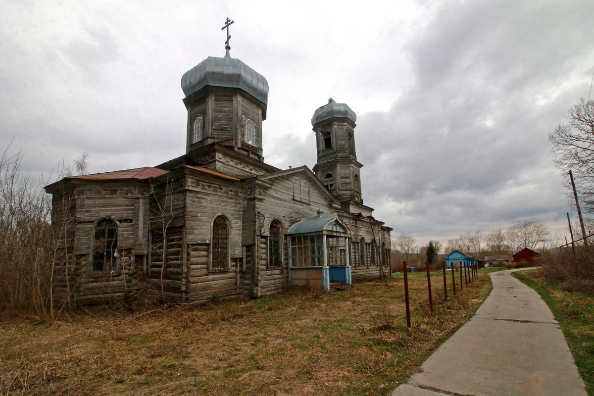 Деревянная однопрестольная холодная церковь, построена на средства прихожан в 1897 году. Одноглавый малый восьмерик на четверике с трапезной и ярусной колокольней. Формы церковного строения имитируют каменную архитектуру в русско-византийском стиле второй половины XIX века. В советское время закрыта, разорена, пришла в запустение. Село Русские Дубровки, Атяшевский район. Мордовия.