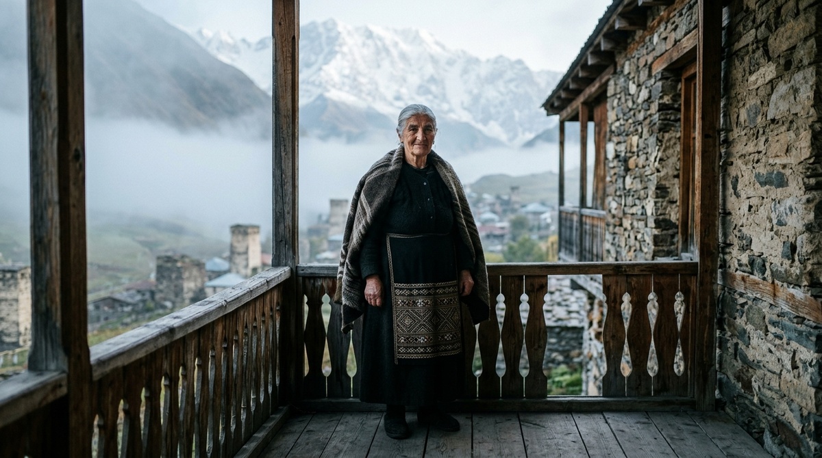 Тамара Архиповна стояла на веранде. В Местии октябрь гонит туман по ущелью — до первого снега оставалось дней десять. Но сегодня её беспокоил не туман на Ушбе. Внучка Нино, уехавшая пару лет назад в Тбилиси «строить карьеру», возвращалась домой. И не одна. Во дворе пахло свежим мчади, дымом очага и сушёными травами с соседних склонов. Нино выпрыгнула из маршрутки первой, а следом неторопливо вылез он — в белых кроссовках, с рюкзаком на одной лямке и наушниками на шее. Гиорги. Тбилисский. Сразу было видно. В этих горах обувь — то, на что смотрят сразу. Белые кроссовки на октябрьской сванской грязи — вывеска: приезжий. Тамара Архиповна прищурилась, но промолчала. Тамара Архиповна вышла с кувшином вина — как положено. Гиорги протянул руку для рукопожатия, не снимая солнечных очков. — Классное место, — сказал он, оглядываясь по сторонам. — Прямо как в инстаграме. Бабка поставила кувшин на стол и ничего не ответила. За ужином Гиорги не притронулся к кубдари — пирогу с мясом, который Тамар