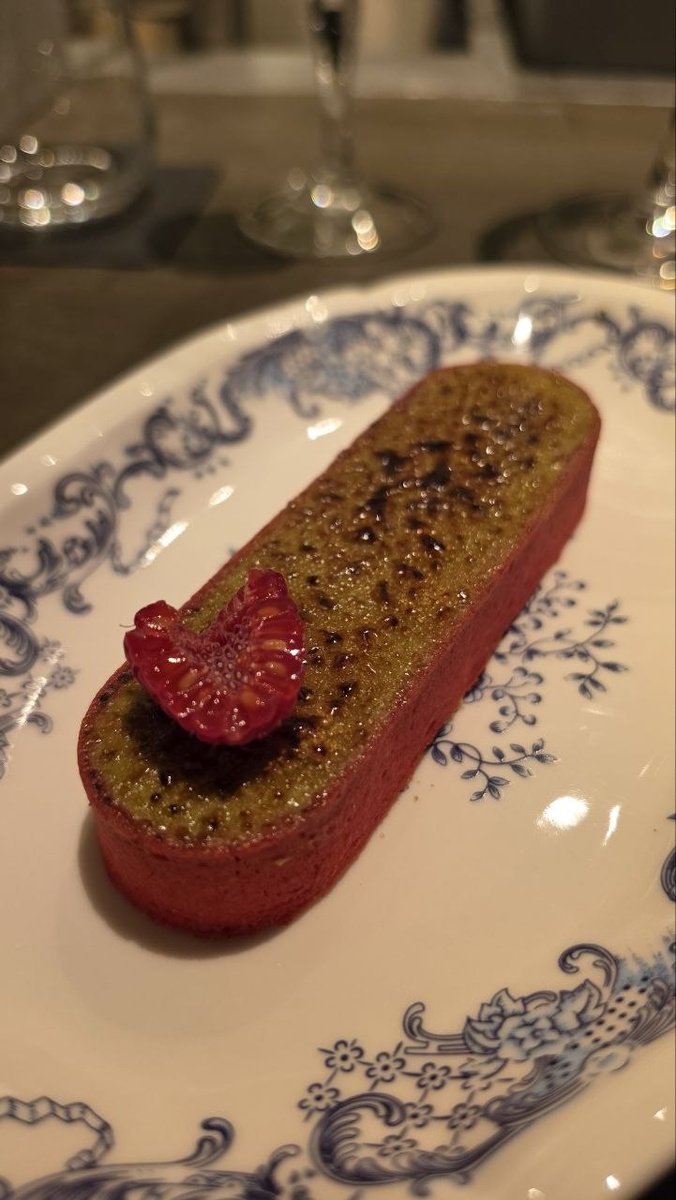 Фисташковый ганаш с малиной Красиво! Разные текстуры: хрустящий корпус, тягучий ганаш, внизу полужидкое малиновое кули. Вкусно и интересно, но ооочень сладко. Нужно запивать чайком. Спасибо за внимание! Я поработал. Пока