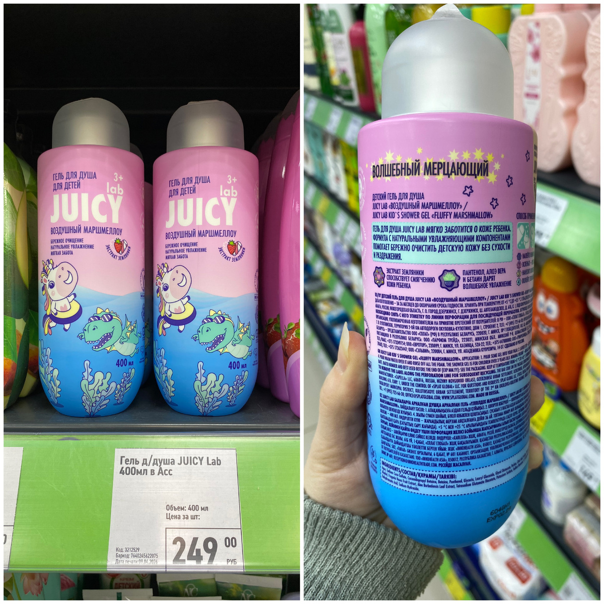 Всем привет. Меня зовут Наталья. Я очень рада видеть вас на своём канале. Сегодня мы с вами прогуляемся по магазину Фикс Прайс, который находится по адресу: город Йошкар-Ола, улица Воинов Интернационалистов, дом 25 в. В этот раз я покажу разнообразные косметические новинки. Так что устраивайтесь поудобнее. Желаю всем приятного времяпровождения. Гель для душа JUICY Lab стоимостью 249 рублей. Его объём 400 мл. Страна изготовления Россия. Данный гель обеспечивает бережное очищение и натуральное увлажнение детской кожи, а также мягкую заботу о ней. Твёрдое туалетное мыло классическое стоимостью 99 рублей. В упаковке 4 кусочка по 75 грамм каждый. Страна изготовления Республика Беларусь. В магазине 3 варианта: зверобой, череда и мыло с козьим молоком. Жидкое крем-мыло парфюмированное SYNERGETIC стоимостью 199 рублей. Его объём 600 мл. Страна изготовления Россия. Мягкая формула парфюмированного жидкого крем-мыла на основе натуральных компонентов очищает и ухаживает за кожей, оставляя на ней р