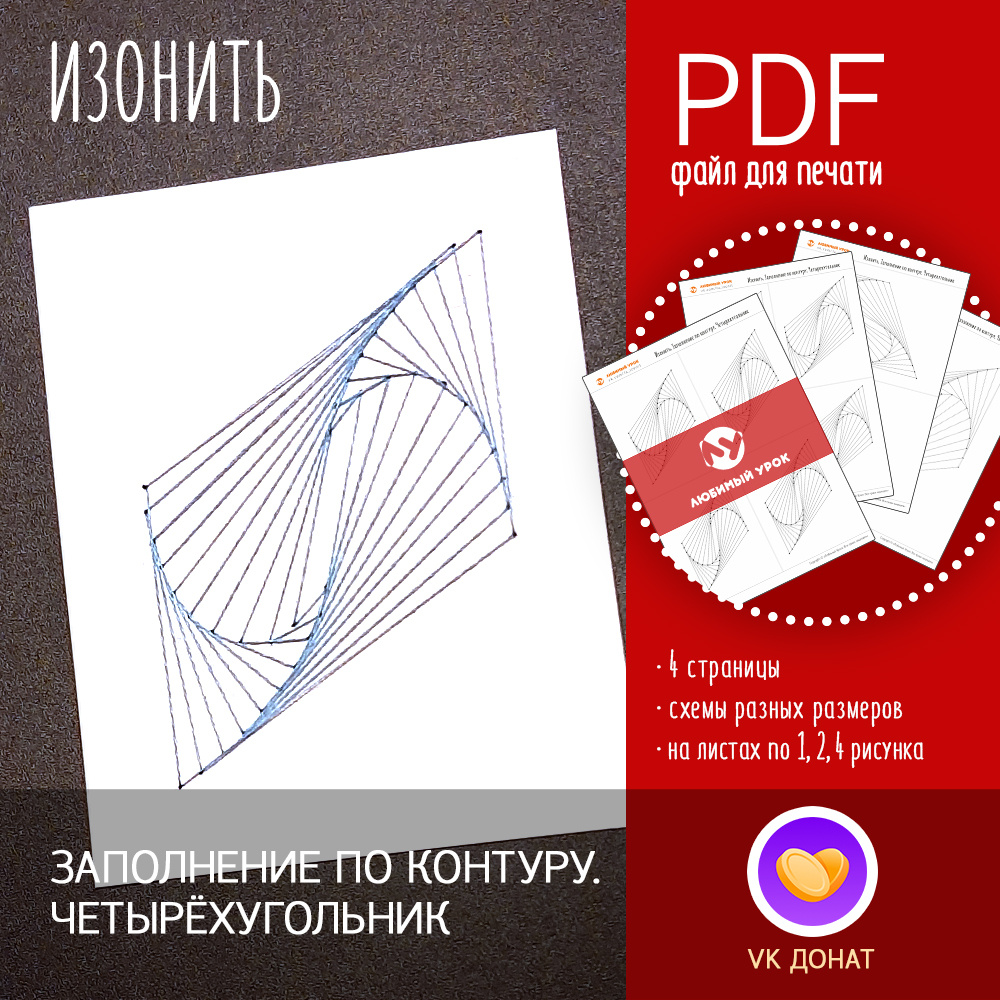 Изонить развивает мелкую моторику, координацию движений, внимание и усидчивость. Ребёнок учится доводить начатое до конца и аккуратно работать с иголкой. В этом уроке мы создаём геометрический узор из четырёхугольников с помощью заполнения по контуру. Проект помогает тренировать абстрактное мышление и чувство ритма. Готовый узор можно использовать для оформления открытки или рамки. 📌 Для кого этот мастер-класс?