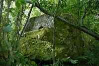 Перейдите ручей с правой стороны дольменов; чуть впереди, слева, — проход сквозь завалы. Пройдите по нему (почти без подъёма) — пересечём среднюю и левую линии. Остановитесь. Перед вами — просторный лес среди обломков скал. Внутри него перпендикулярно ЛЭП пролегают старые дороги, теперь ведущие никуда. Скорее всего, справа от вас (если спиной к ЛЭП) — колея, которая постепенно поднимается вверх по склону и глубоко врезается в него. Идите вдоль левого края этой дороги, не спускаясь в колею, а по лесу — как можно ближе к ней. Пройдя не более чем 100 метров, слева увидите третий дольмен. Его фасад обращён в сторону склона! Если подойти сзади — увидите огромную скалу: это дольмен полумонолитного типа, вытесанный прямо из скалы.