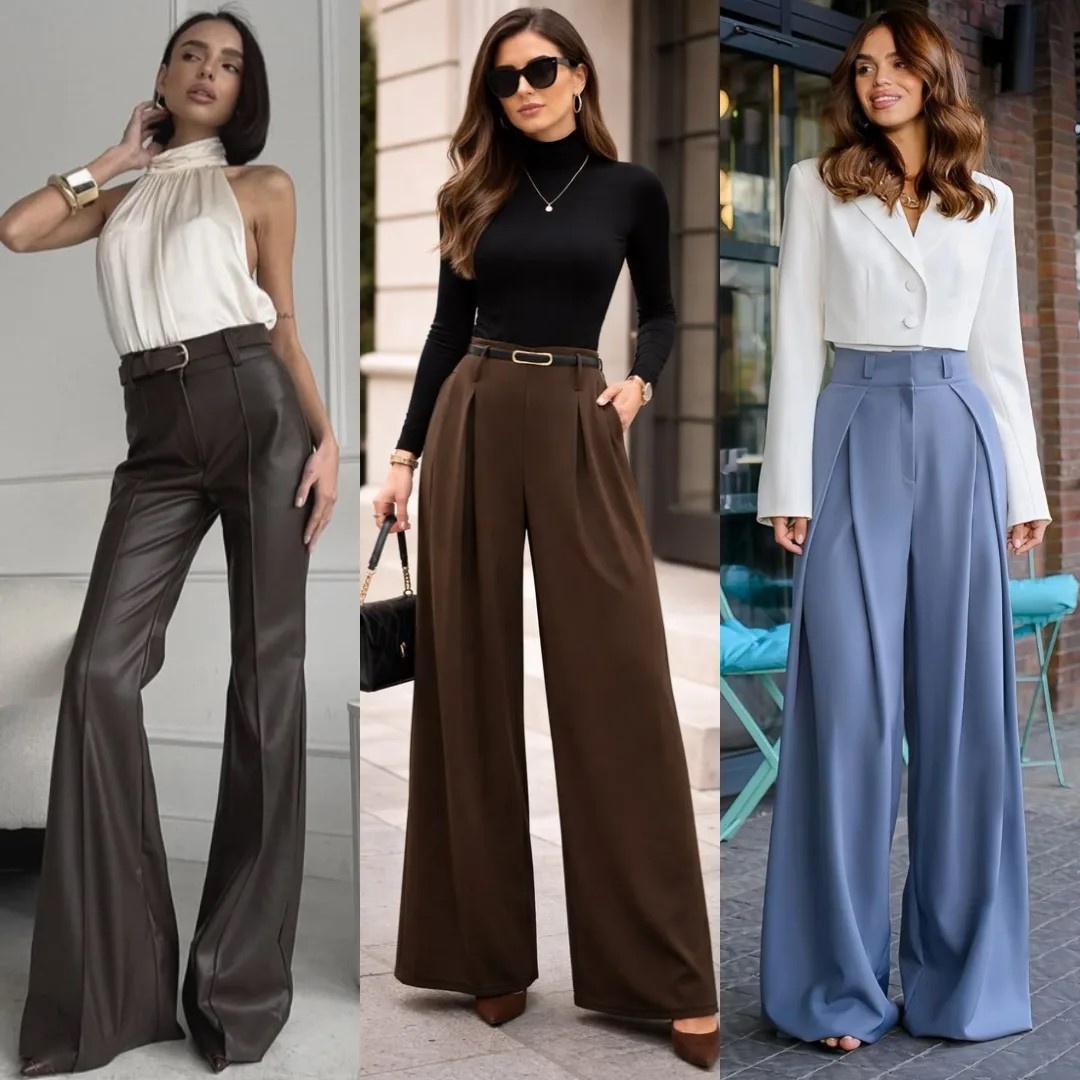 - Брюки с высокой талией: Визуально удлиняют ноги и подчеркивают талию. Отличный выбор для большинства типов фигур.