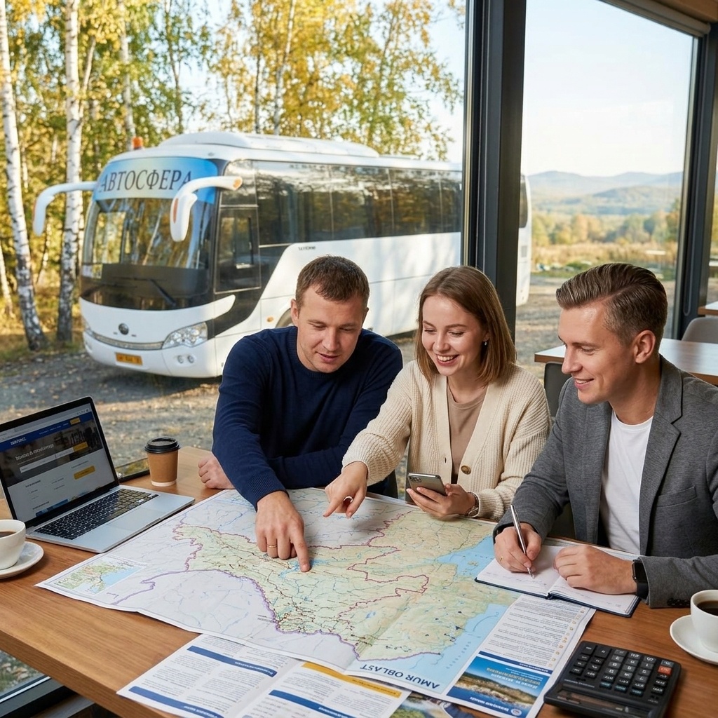 Самостоятельная организация группового тура по Амурской области требует значительных временных инвестиций и внимания к деталям. Экономия 100-150 тысяч рублей на участника полностью компенсирует затраченные усилия, особенно для регулярных корпоративных мероприятий и ежегодных образовательных экскурсий. Для обеспечения надежного транспортного обслуживания вашего группового тура обратитесь в компанию Автосфера — мы предоставляем качественные автобусы и профессиональных водителей для комфортных и безопасных поездок по Амурской области.