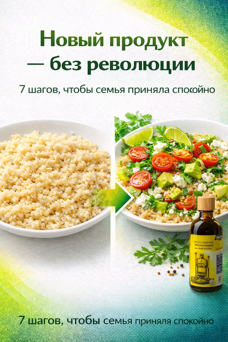 Если коротко: семья редко принимает новый продукт потому, что ей “объяснили пользу”. Обычно всё решает другое — вкус, подача, привычность блюда и отсутствие ощущения, что дома начались реформы. Поэтому мы в ВЭИК советуем идти не через давление, а через спокойное встраивание: знакомая еда, маленькая добавка, мягкий результат.