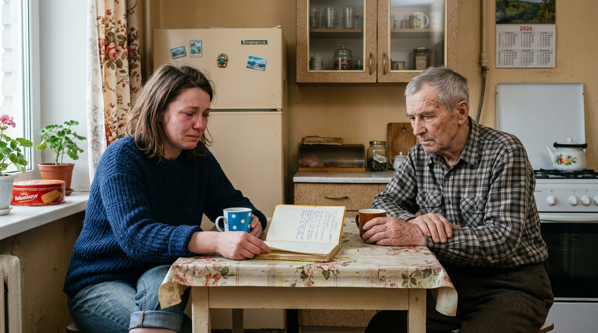 Она приехала через двадцать минут, с мокрыми от дождя волосами. Я посадила её за стол, поставила перед ней тетрадь на той странице, положила рядом фотографию и сказала всё сразу. Как умела. Без подготовки. Про коробку, про запись, про Рыбинск, про Николая Петровича, про Полину, про то, что бабушка в двадцать девять уже писала Коле рецепт торта с припиской «мама», про открытки на девятое мая, про «спасибо за всё», отправленное за полгода до конца.