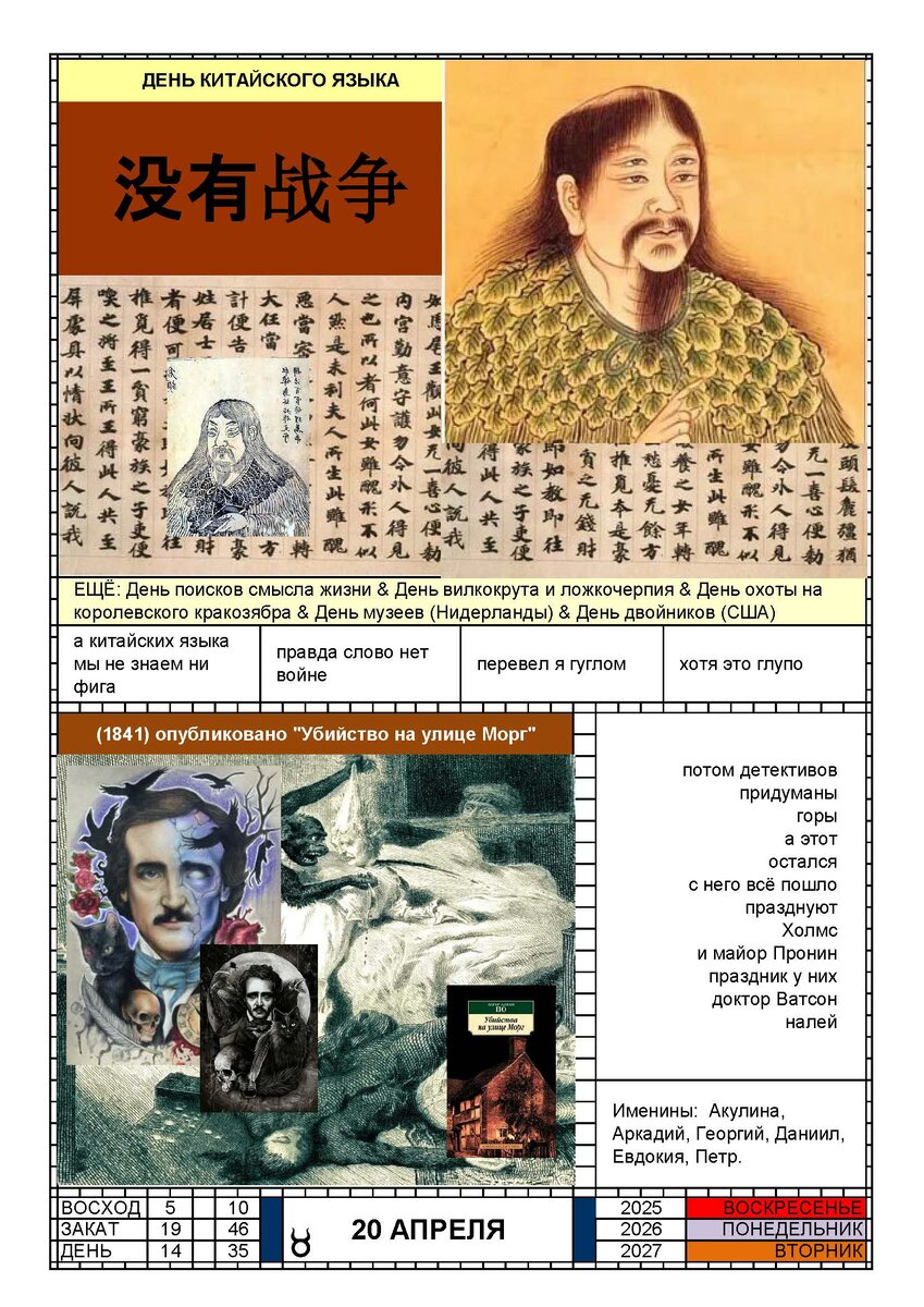 КАЛЕНДАРЬ 20 АПРЕЛЯ