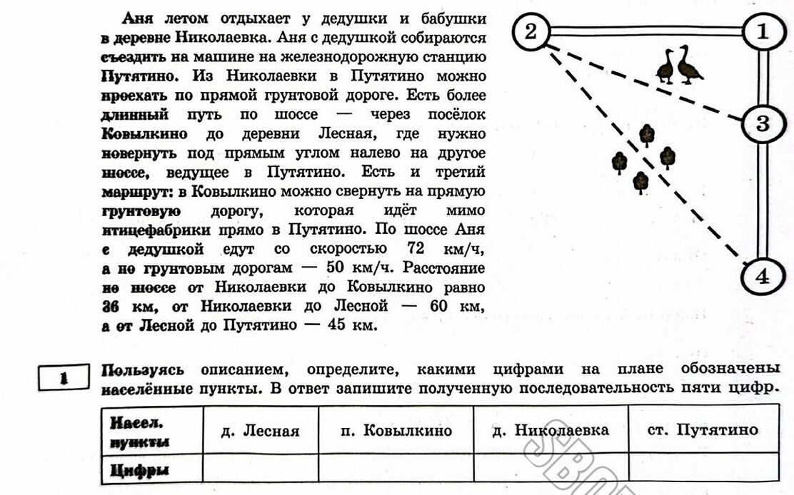 В первом задании по описанию необходимо понять под какой цифрой на плане какой населенный пункт находится. Это одно из самых простых заданий в билетах.