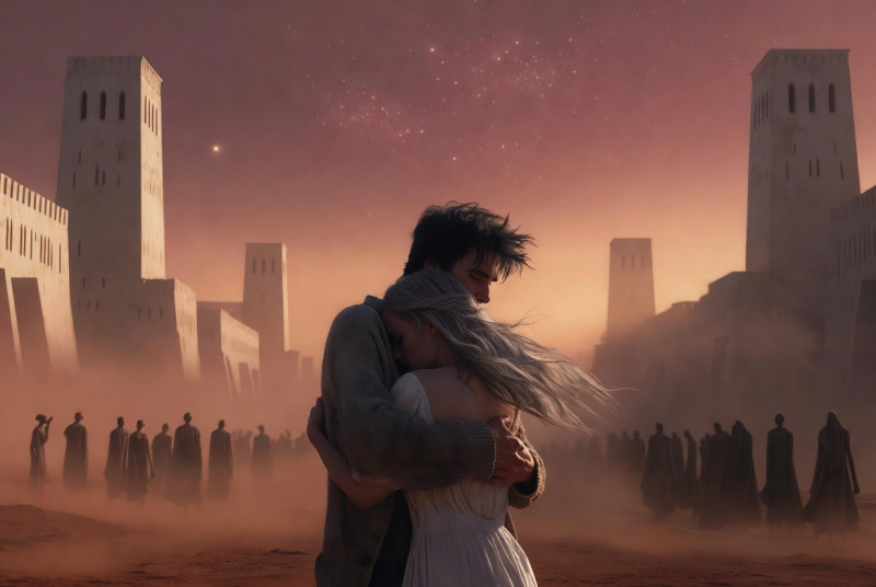 Он проснулся от удара в плечо. Исаак стоял посреди дороги, вокруг него по своим делам шли марсиане — не похожие ни на людей, ни на что знакомое. Он поднял голову: розовое небо и слабое сияние звёзд, одна из которых была Земля. Под небом стояли белые башни с узкими окнами, словно средневековые бойницы. Он не понял, как тут оказался.