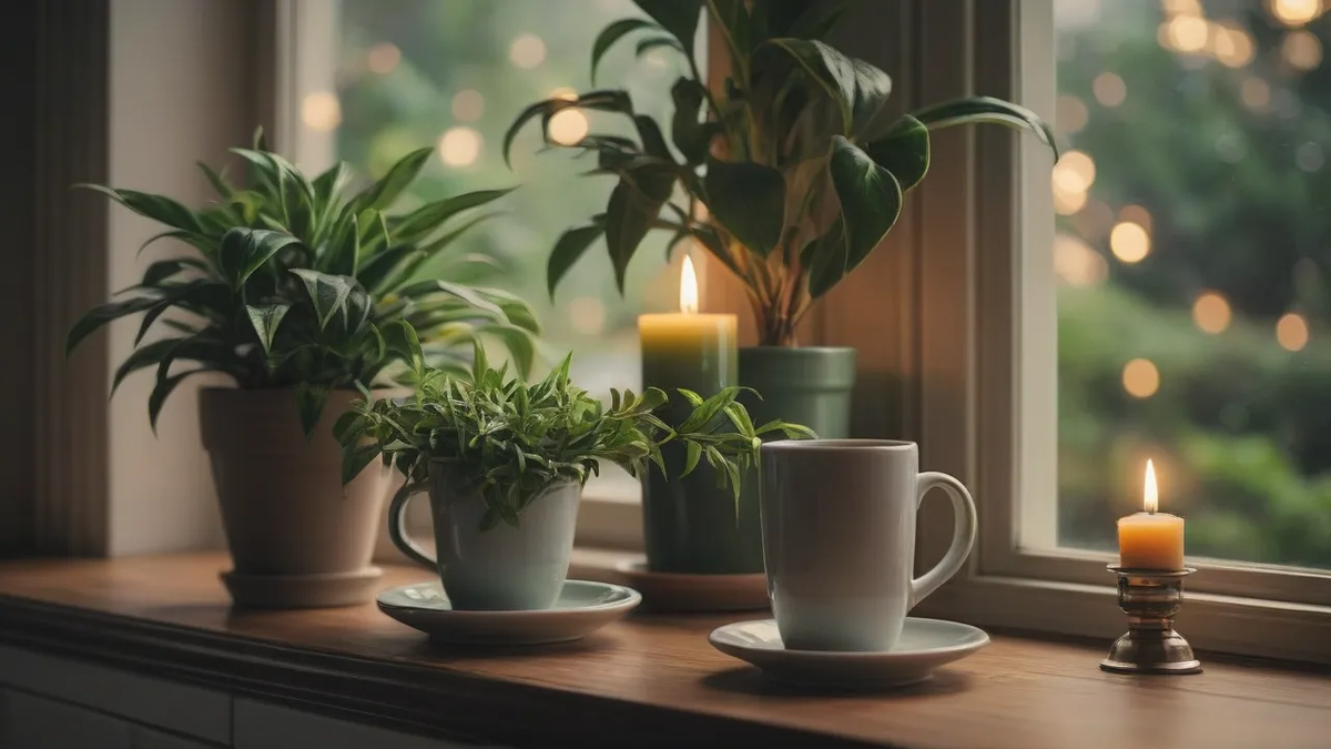 Используйте мягкое освещение. Настольные лампы с теплым светом и гирлянды создадут атмосферу комфорта и спокойствия. - Растения в интерьере