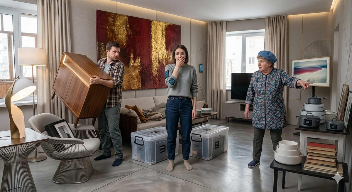 — Светочка, деточка, не стой столбом, принимай добро! — командовала свекровь, выходя из кабины в ярко-синем берете. — Я же не могу без своих вещей. Тут мои кастрюли, мой любимый ковер с оленями, телевизор «Горизонт» (запасной) и фикусы. Куда ставить?
