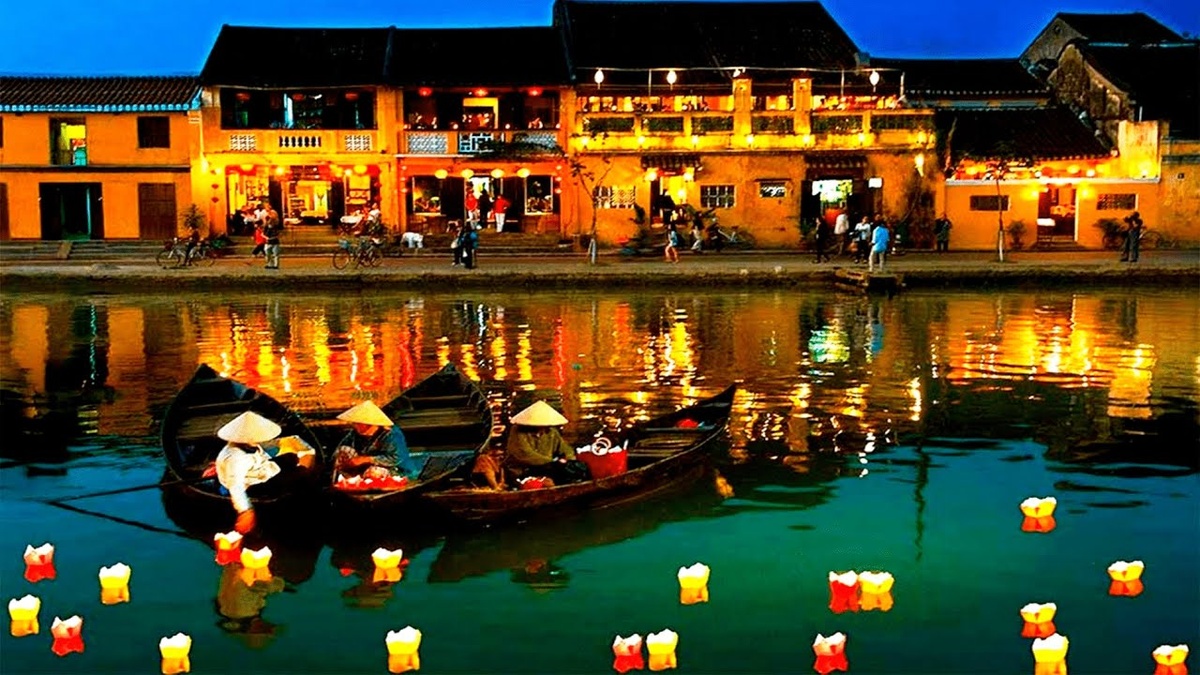 Город стоит у реки Thu Bồn, и вечером, когда в старом квартале зажигаются фонари, набережная и вода выглядят почти нереально красиво. Именно речная линия, фонари и невысокая историческая застройка создают ту самую картинку, ради которой в Хойан едут со всего Вьетнама.