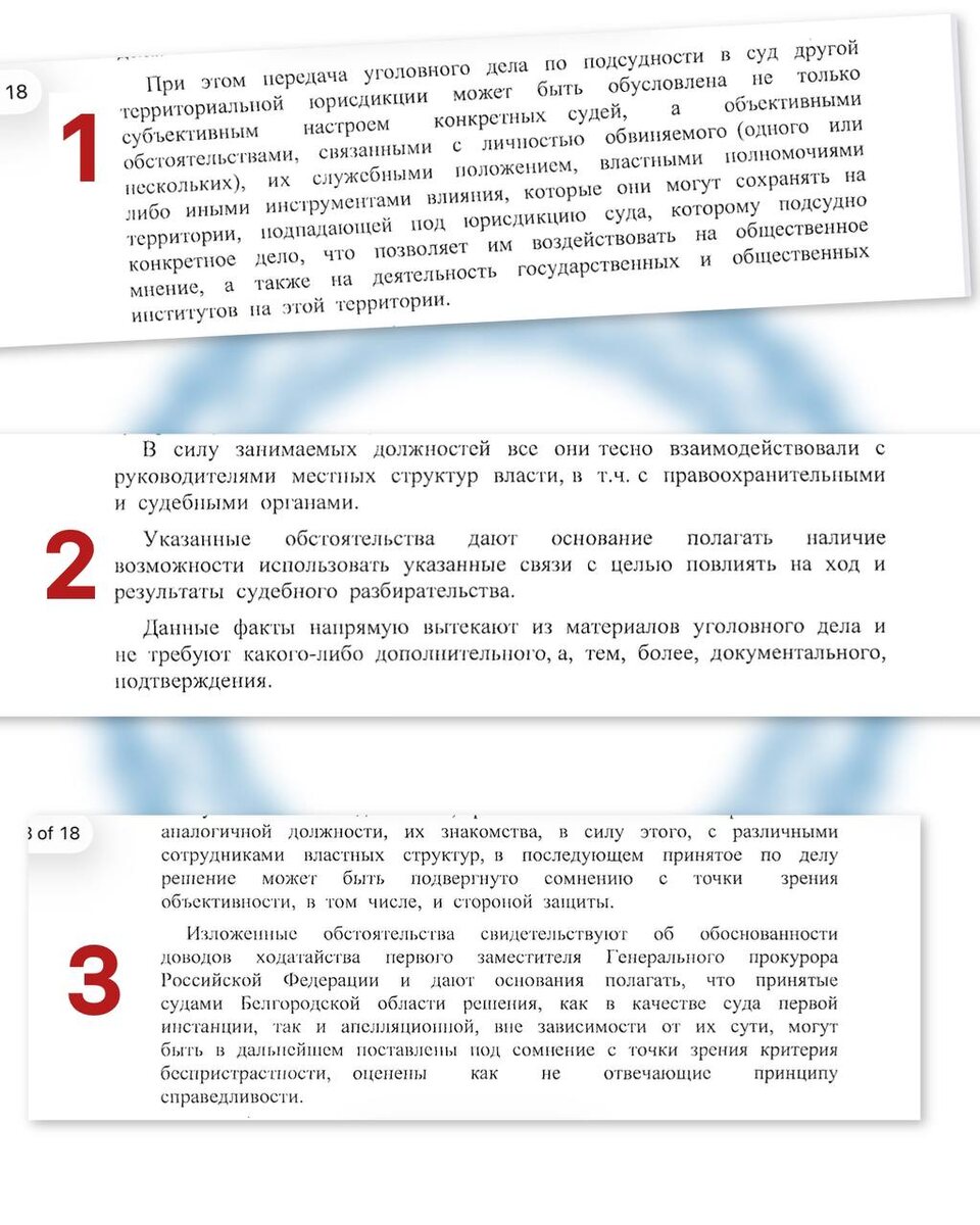 ? Пришла моя пора пожаловаться… ой ой … проанализировать вместе с Вами, мои дорогие читатели, очередной шедевр – Постановление самого Верховного нашего суда. Как говорится, в расследовании самое главное не выйти на самих себя. ✅Суть дела. Зам. Ген прокурора обратился в ВС РФ с ход-вом об изменении территориальной подсудности рассмотрения уголовного дела в отношении ряда чиновников из их региона в суды г. Москвы. Другими словами, прокурор сказал, что не надо рассматривать уголовные дела в отношении чиновников в их родном регионе. Теперь давайте вместе с вами проанализируем доводы судьи Верховного суда, почему надо это сделать. ✔️Смотрим на картинку 1️⃣ По мнению судьи Верховного суда (то есть, судьи высшего судейского органа) чиновники могут повлиять на общественное мнение о себе, а это общественное мнение на судей! Другими словами, здесь написано, что судья ВС РФ признает, что судьи в регионах могут пренебречь своей независимостью и поддаться общественному мнению. Фактически - э