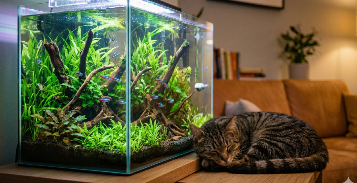 Забудьте про круглые бокалы из мультиков! В них рыбы быстро гибнут. Для новичка идеальный объем — 60–100 литров. В таком объеме проще всего держать биологический баланс, и он прощает мелкие ошибки (например, перекорм).