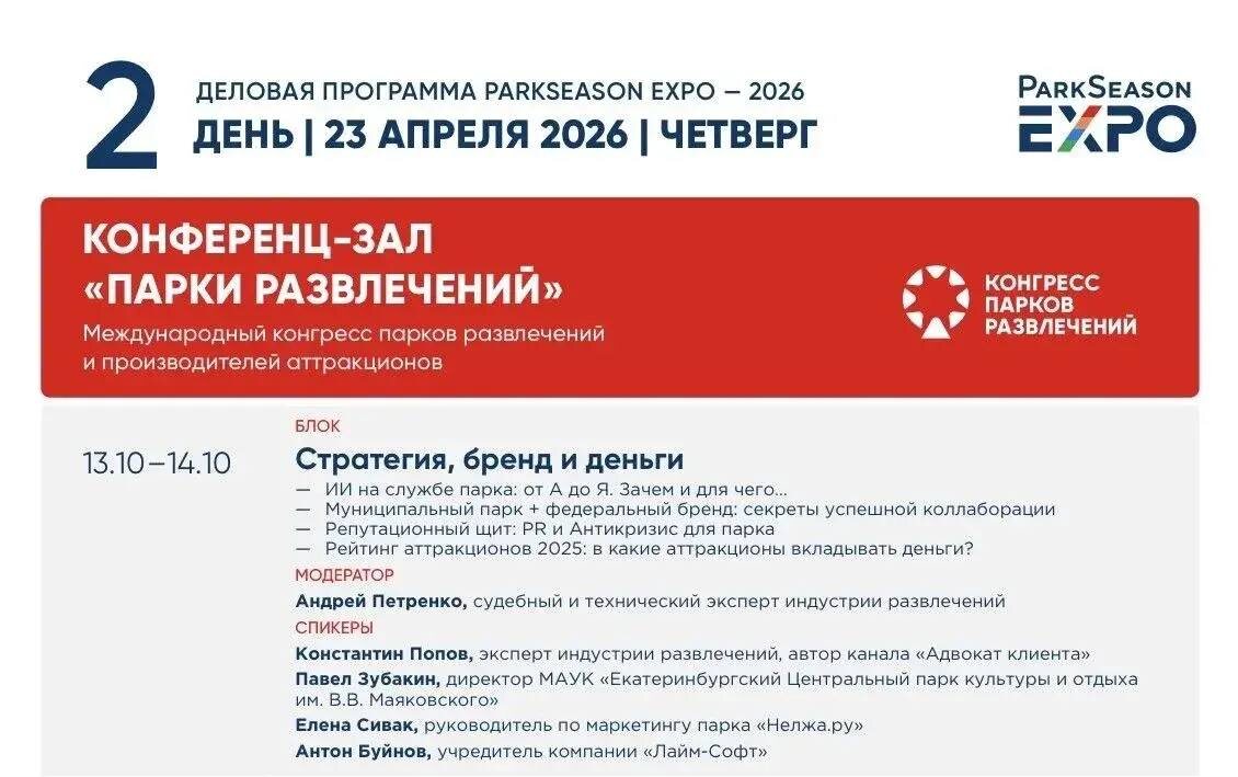 Очень экспертная команда подобралась. Программа интересная, подробности здесь https://expo.parkseason.ru Присоединяйтесь, будет профессионально и продуктивно. До встречи! 🎡