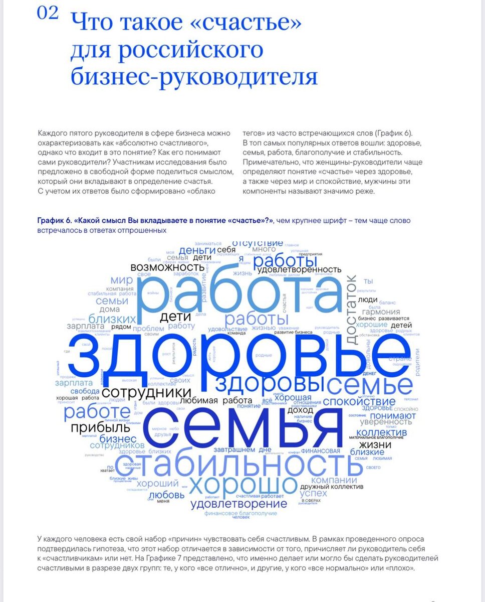 ☀️ Попалось исследование 2024 года «Кому на Руси жить хорошо?» Интересно в 2026 году что-то поменялось кардинально Мне кажется нет… Только стресса и тревожности стало больше Несколько цифр из исследования: 🔹 Какими навыками и умениями должен обладать руководитель компании в Вашей сфере, чтобы добиться успеха? 57% - Умением действовать рационально в условиях стресса, многозадачности 56% - Умением справляться со стрессом, сохранять ментальное здоровье 46% - Умением сочетать в балансе личную и профессиональную жизнь 🔸 У 20 % участников исследования уровень счастья можно охарактеризовать как максимальный. «Абсолютно счастливые»,они однозначно чувствуют себя таковыми, в том числе при сравнении себя с другими. 🔹 74 % опрошенных в данный момент находятся в «нейтральной» позиции. У них «все нормально». 🔸6 % руководителей не чувствуют себя счастливыми, не получают удовольствия от жизни и работы и считают, что их эмоциональное состояние сравнительно хуже, чем у большинства.