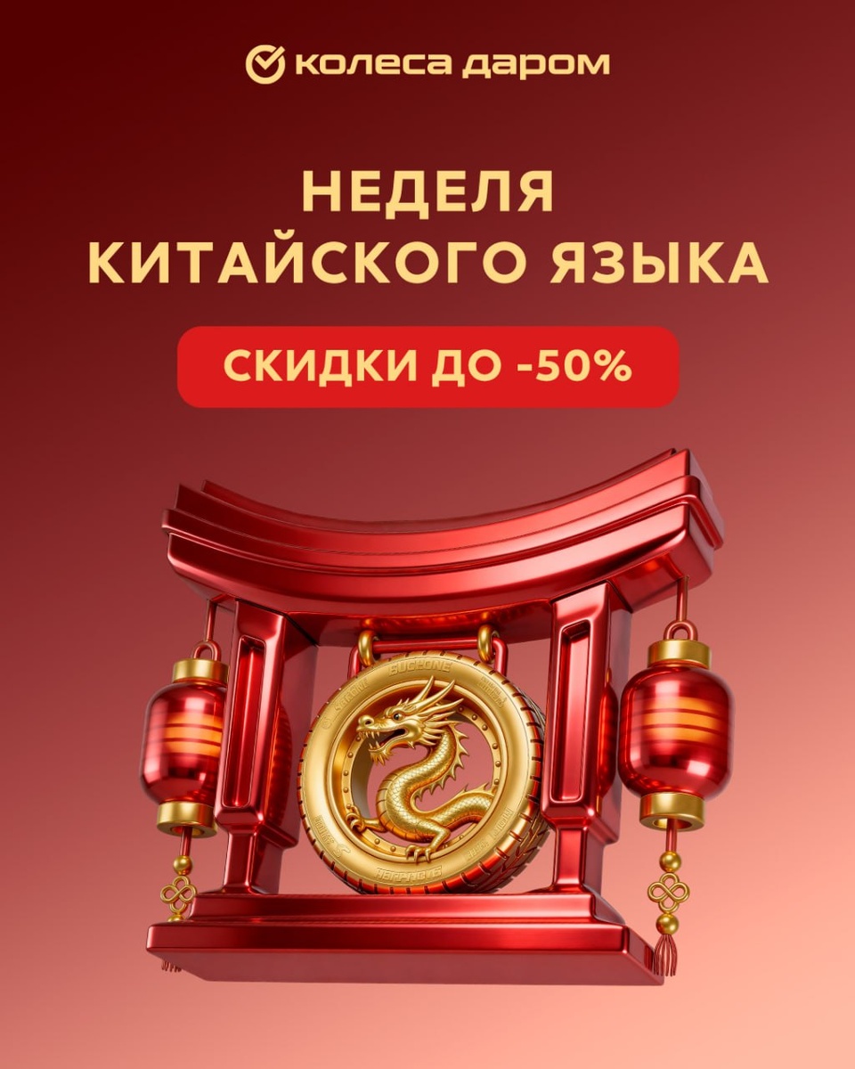 🇨🇳 Начнём с простого: 轮子 – КОЛЁСА 送的 – ДАРОМ 折扣 – СКИДКИ СКИДКИ ДО 50% НА ШИНЫ ведущих производителей КНР (и не только)! Выбирайте акционные модели (шоссейные и внедорожные) на сайте с перечёркнутой ценой. А если не нашли нужную модель брендов Autogreen, Evergreen, Lanvigator, Linglong, Triangle или Atlander с меньшей ценой, то воспользуйтесь промокодом CHINA_WEEK7 и гарантировано получите на них скидку 7%! Акция действует с 20 по 26 апреля 2026 года. Подробности – здесь 👈