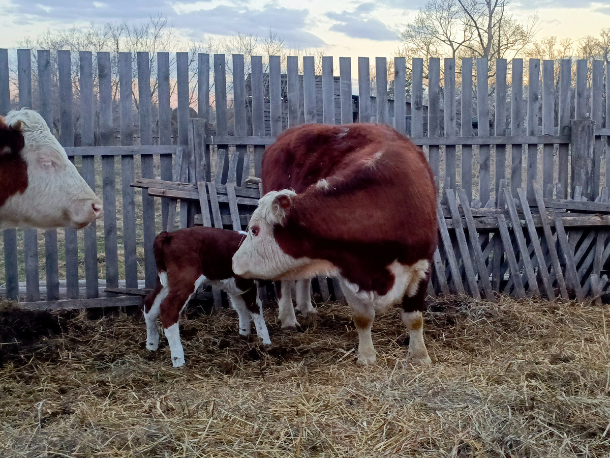 Пять месяцев назад отелилась Красотка (20.11.25). Бык.