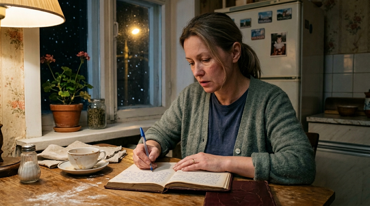 Я посмотрела на него. На тетрадь. На окно, где отражалась наша кухня, наши плечи, моя рука на странице.