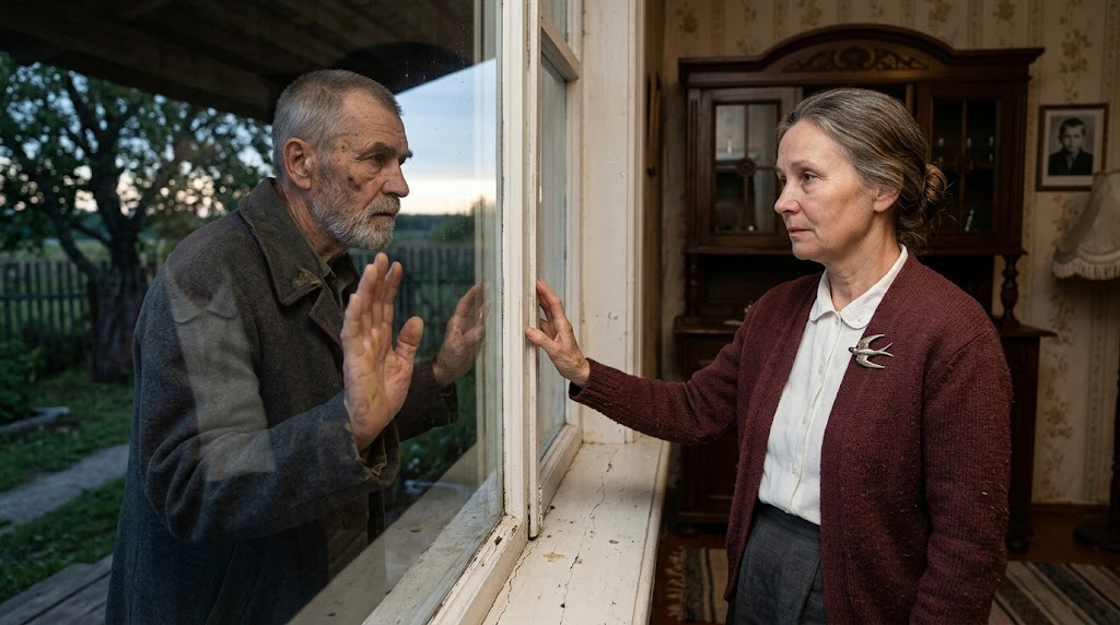 За окном стоял человек. Высокий, худой, в плохом пальто не по сезону – в июле. Борода, поседевшая неровно, клочьями. Волосы коротко стриженые, как в больницах стригут. Он поднял руку – медленно, будто боялся её напугать, – и положил ладонь на стекло.
