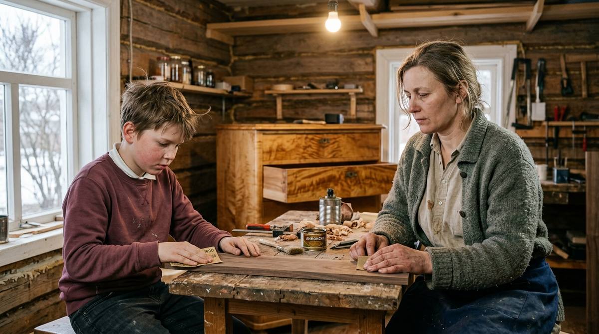 В окно пристройки било мартовское солнце, косо, через заснеженный куст сирени. От комода шёл тёплый запах льняного масла. На верстаке ждала недошкуренная ореховая планка – та самая, которую она чуть не сломала утром.