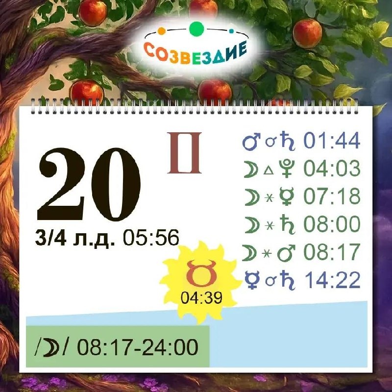 Тормозим об стену здравого смысла Сегодня Вселенная выдает нам строгий деловой костюм и усаживает за стол. Эпоха горячего, суетливого Овна официально завершена — наступает месяц основательного, никуда не спешащего Тельца. Но вот парадокс: тело требует сытного завтрака и комфорта, а голова все еще пытается решить сто задач одновременно. Придется договариваться с собой! 😂 Астро-анекдот — Я придумал гениальный стартап! Мы запустим три подкаста, захватим рынок, выучим хинди и улетим жить на Бали! — Звучит потрясающе. А ты смету рассчитал? Табличку в Excel заполнил? Налоги отложил? — Ну вот, пришел взрослый человек и испортил весь полет фантазии... Мораль: Любая, даже самая гениальная идея сегодня не стоит и ломаного гроша, если под нее не подведен фундамент из цифр и сроков. 🌤 Рано утром (в 04:39 МСК) произошло важное событие — Солнце торжественно перешло в знак Тельца. Внутренний моторчик сбавляет обороты, нам хочется стабильности, предсказуемости и гарантий. Однако Луна при этом пор