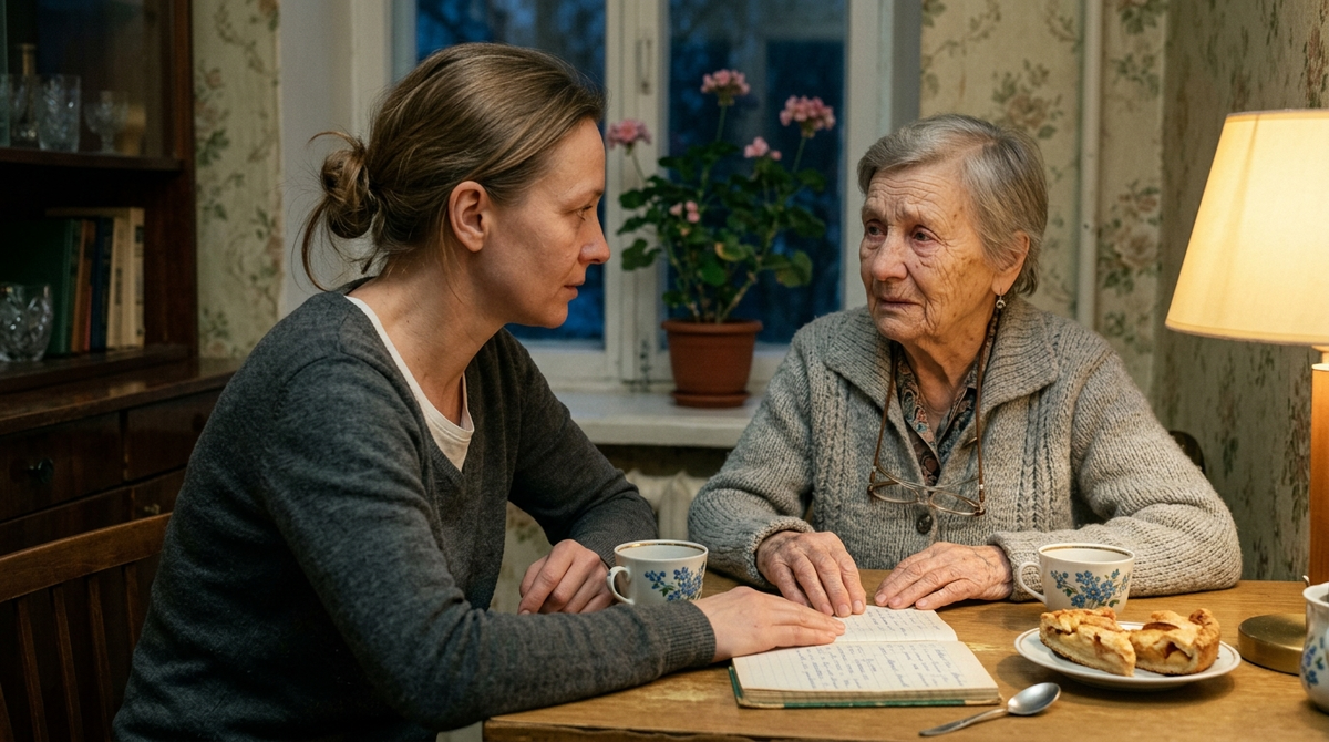 – Вера, сестра моя, – тётя Рая говорила медленно, с паузами, – училась в деревне до четвёртого класса. Больше не пришлось. Война. Отец погиб в сорок третьем под Ржевом, мама заболела после, Вера с десяти лет в колхозе. Потом доярка, всю жизнь. Писала она… с трудом. Буквы знала, но слова складывала, будто каждое заново учит. Читала по складам. Журнал полистает – и устанет.