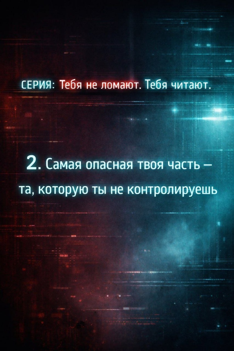 Есть иллюзия: «Я такой, какой есть. Я просто искренний человек». Звучит красиво. Но если разобрать… Искренность без осознанности = автоматизм. А автоматизм — это кнопки. Смотри внимательно: Тебя критикуют → ты оправдываешься Тебя хвалят → ты раскрываешься На тебя давят → ты сдаёшься или взрываешься Это не ты. Это набор реакций. Схема: Стимул → Реакция (без паузы) → Повтор → Предсказуемость → Управляемость Вот где тебя берут. Не в слабости. А в отсутствии паузы. Пауза — странная вещь… Она почти незаметна. Иногда это 2–3 секунды. Но в эти секунды происходит перелом: Ты перестаёшь быть объектом и становишься тем, кто выбирает. И вот тут ломается расчёт. Потому что манипулятор не работает с тобой. Он работает с твоей ожидаемой реакцией. А если реакции нет сразу… он теряет опору. Вывод: Свобода — это не «делать, что чувствуешь». Свобода — это решать, что показать из того, что чувствуешь.